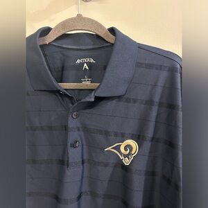 Antigua Polo Shirt Men’s Large Football Rams Short Sleeve Navy Blue Stripes