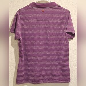 Chic purple striped polo by Antigua. Short sleeves for casual comfort. Colorado Springs County Club Size Medium