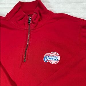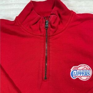 Antigua Red Zip Up Sweater with Ribbed Cuffs Clippers basketball