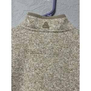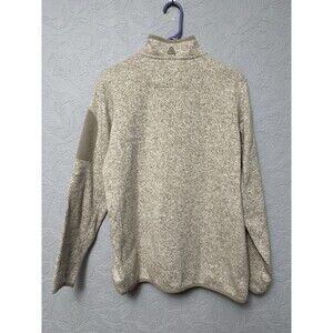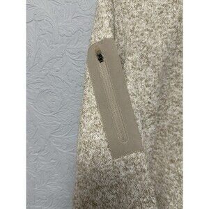 This is a beautiful and warm pullover. Made with polyester sweater knit, this pullover speaks sophistication. It offers subtle contrast color on the bottom of the sleeves, hem, zipper flap and top of the neck.