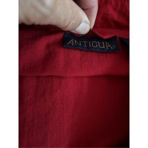 Full zip nylon jacket. Adjustable cuffs. A bit of elastic in the waist. 2 front pockets. Pit to pit measure is 24 inches. Length is 27 inches.