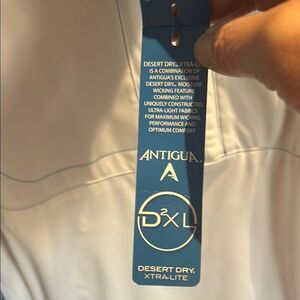Stylish Antigua windbreaker. Features a half-zip front. Lightweight and comfortable. Ideal for windy days.
