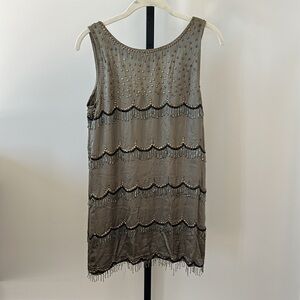 Discover the perfect dress for your next evening out and look stunning in Antik Batik's silk dress! Beautiful bronze sequins adorn the luxurious blend of silk and linen while intricate beading ensures a statement-making style.