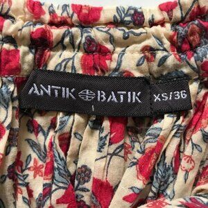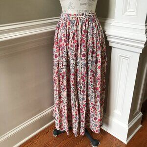 Antik Batik Annie Print Maxi Skirt Womens 36 XS Red Cream Floral Print Cotton