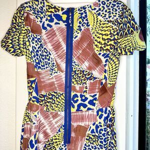 Beautiful, bright and unique mismatched prints and clashing colors in a body hugging mini dress by French luxe brand Antik Batik