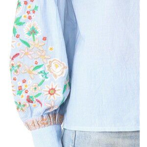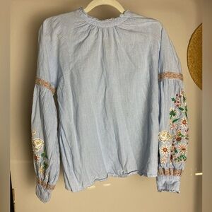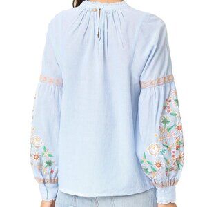 Antik Batik Blue Fields Long Sleeve Embroidered Blue Blouse Size 38