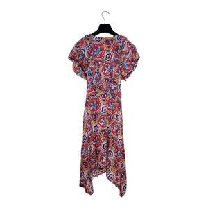 Antik Batik Boho Print V Neck Midi Dress XS 36 EU
