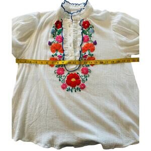 Antik Batik Clotilda Hand-Embroidered Floral Cotton Crepe Blouse White - 42 (L)