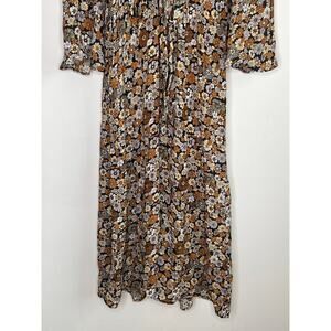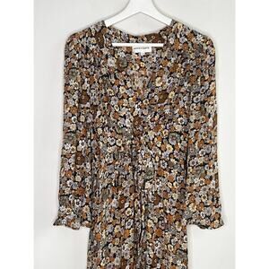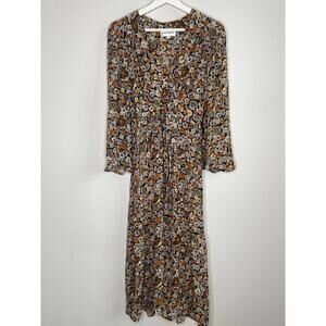 Antik Batik Colline Floral Long Sleeve V-Neck Midi Dress Rust Women's Size S/38
