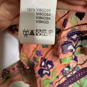 Antik Batik Coral Embroidered Sheer Blouse Women's Small/38