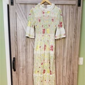 Beautiful NWOT Antik Batik Fanya Embroidered Sheet Maxi Dress Floral White