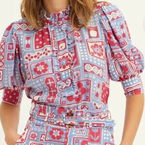 Antik Batik Honoka Blouse blue pink NWT size small