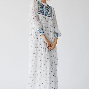 - Gorgeous Georgette maxi dress featuring allover metallic embroidery detailing.