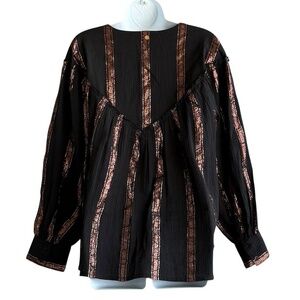 Antik Batik Striped Peasant Gauze Top Size S Black Long Sleeve Metallic Blouse
