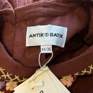 Antik Batik Top Line Embroidered Blouse Brown Hand Stitched Anthro Sz XS NEW
