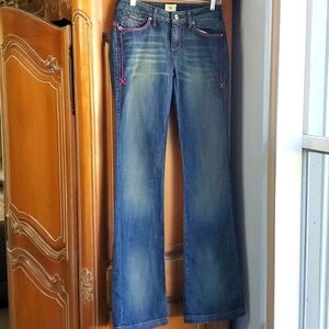 Antik Denim Boot Cut Jeans - Dark Gray with Pink Accents