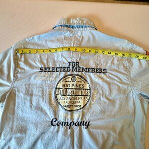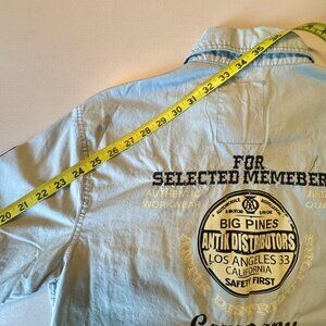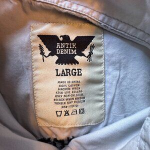 Antik Denim Button Up Patch Shirt Mens Large Blue Long Roll Tab Sleeves Patches