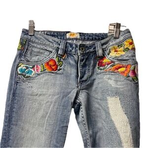 Antik Denim Monroe Bootcut Flared Jeans Size 26 Embroidered Rare Floral Fall Fit