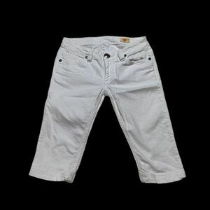 Antik Denim White Denim Shorts Southwest Style Patch & Trim Sz 27