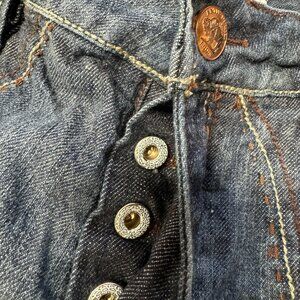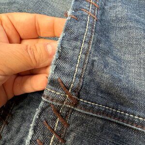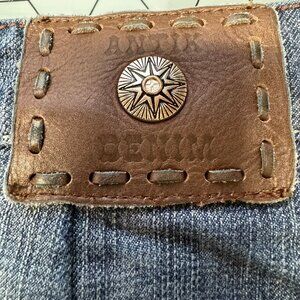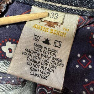 Antik Jeans Mens 33 Actual 34x30 Embroidered Pocket Brown Stitching Button Fly