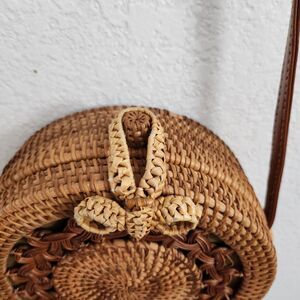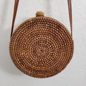 Antik Kraft Crossbody Bag Round Straw Brown Wicker Rattan Handwoven Beach Boho