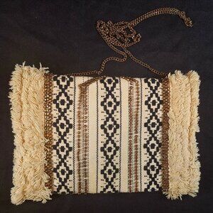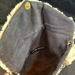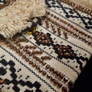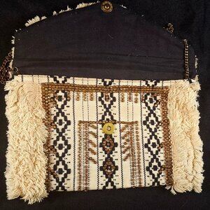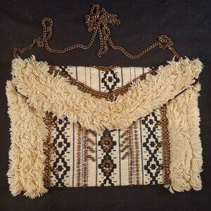 Antik Kraft Furry Crossbody Embroidered Bronze Beaded Purse Boho Western Aztec