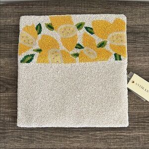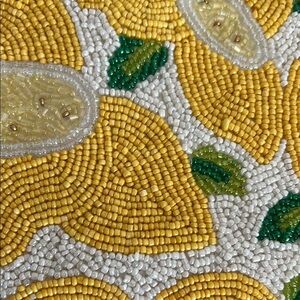 Love this purse 🍋✨ features a vibrant lemon design, beading - with a soft, neutral lining and a convenient magnetic button closure.