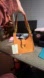 Chic Antik Kraft shoulder bag in a striking orange hue. Features a unique gold chain strap and stylish stitching. Perfect for adding flair to any outfit.