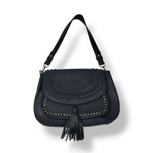 Antik Kraft Vegan Leather Studded Fringe Saddle Bag in Black