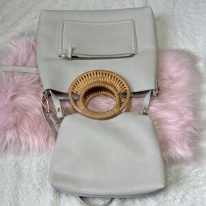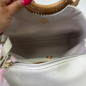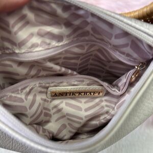 Antik Kraft White and Tan Shoulder Bag with Wicker Handle