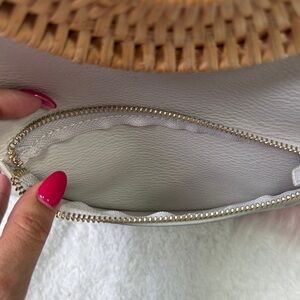 This Antik Kraft shoulder bag combines a sleek white design with a natural tan wicker handle, offering a chic and minimalist look. Crafted for style and versatility, it features a structured yet soft form, making it a standout accessory for any occasion.