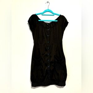 Antilia Femme Button Down Pockets Pleated Front Stretch Black Casual Dress Size M