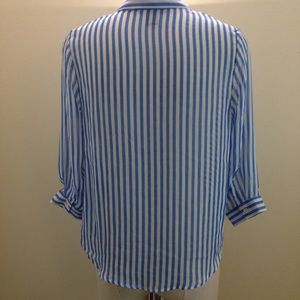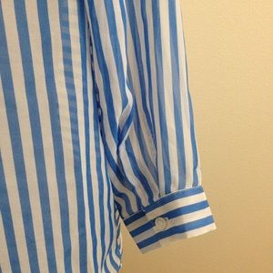 This light weight sheer top just begs to be paired with a pair of your favorite white denim. The blue and white stripes give of a nautical vibe perfect for summer and spring. Tuck into a skirt for an elevated look!!