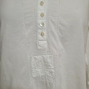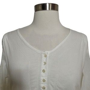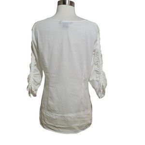Antilia Femme White Cotton 3/4 Sleeve Embroidered Button Top Size Small