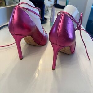 Antinio Melani Metallic Pink Lace-Up Stiletto 4 Inch Heels- Size 8 Medium
