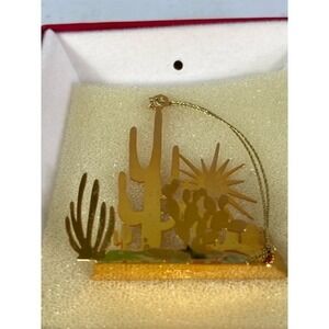 Antiquated Camerlane 24k Gold Christmas Landscape Ornament 1983 Desert Scene