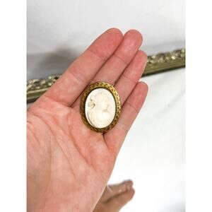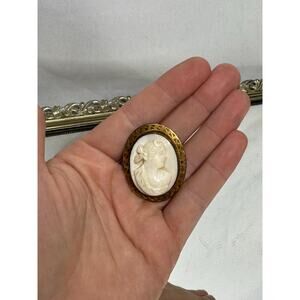 Antique 10K Gold Carved Shell Cameo Brooch Pin