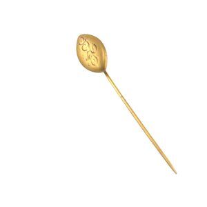 This exquisite antique gold tone stick pin features a leaf-shaped top adorned with an intricate swirl pattern. Its elegant and timeless design makes it an ideal accessory for those who appreciate vintage fashion. A perfect addition to any jewelry collection, this pin adds a touch of sophistication and charm to outfits.