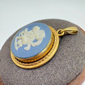 Antique 10K Yellow Gold Filled Wedgwood Pendant Bezel Set Rope Border 1.25" L