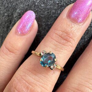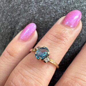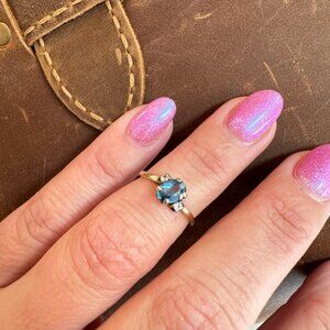 Antique 10k Blue Topaz and Diamond Ring Solid Gold