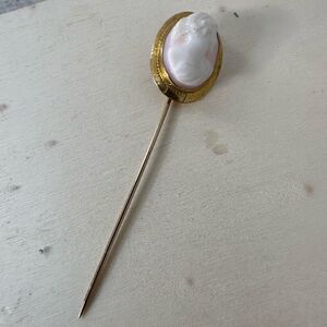 Antique 10k Gold Shell Cameo Stick Pin