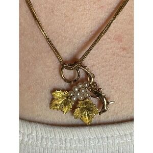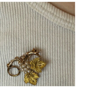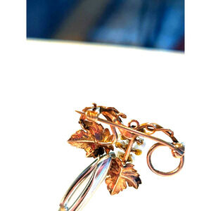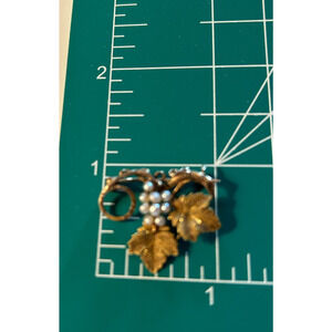 Antique 10k+ Solid Yellow Gold Seed Pearl Grapevine Brooch Chain not included