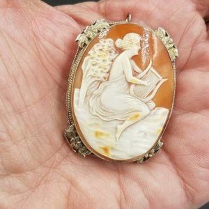 Antique 14K Gold Full Figural Cameo Brooch/Pendant