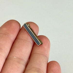 Antique 14K Yellow Gold Blue Guilloche Enamel Detail Small Petite Bar Brooch Pin