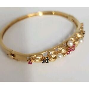 Antique 14k Yellow Gold Pearls,Ruby & Sapphire Bangle Bracelets