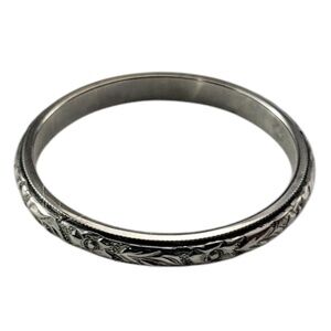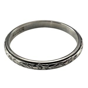 Antique 18 Karat White Gold Floral Design Thin Wedding Band Ring Size 7 #20579