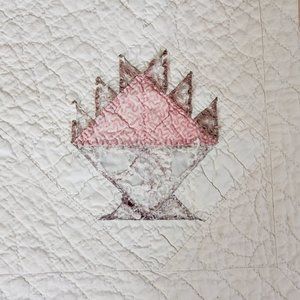 Antique 1860-1880 Cake Stand Basket Quilt Hand Sti