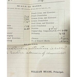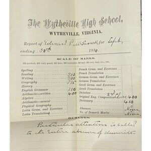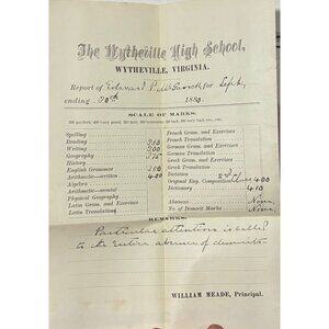 Antique 1880 Wytheville High School Student Report Card William Meade McGavock