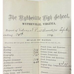 This 1880 student report card from Wytheville High School reflects the academic rigor and evaluation methods of the era, evoking a glimpse into historic education.