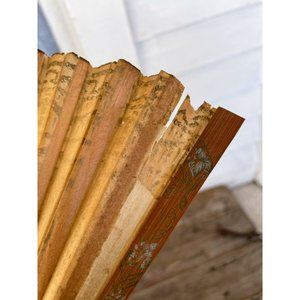 Here for your consideration is an old Advertising piece for Bissel Vacuums. It is a hand painted Japanese hand fan and made of delicate Rice Paper. The pair does have some deterioration but overall for a delicate piece in good shape. The wear to the paper is shown in my pictures.